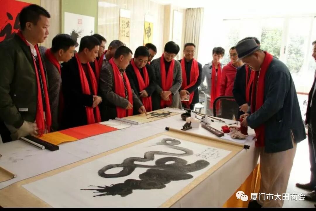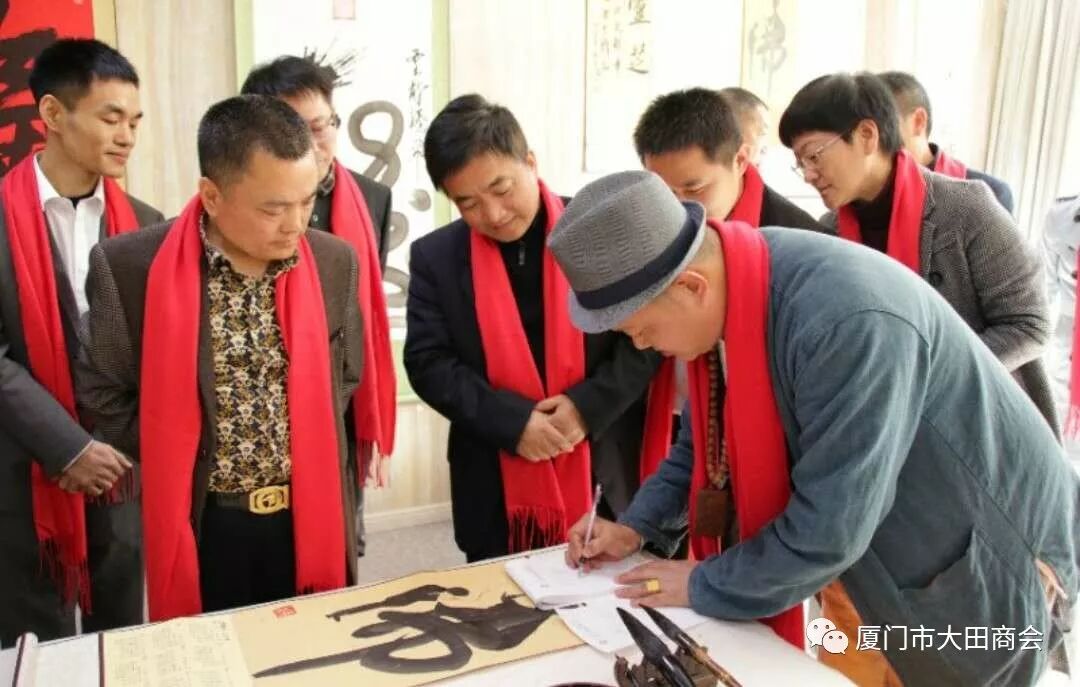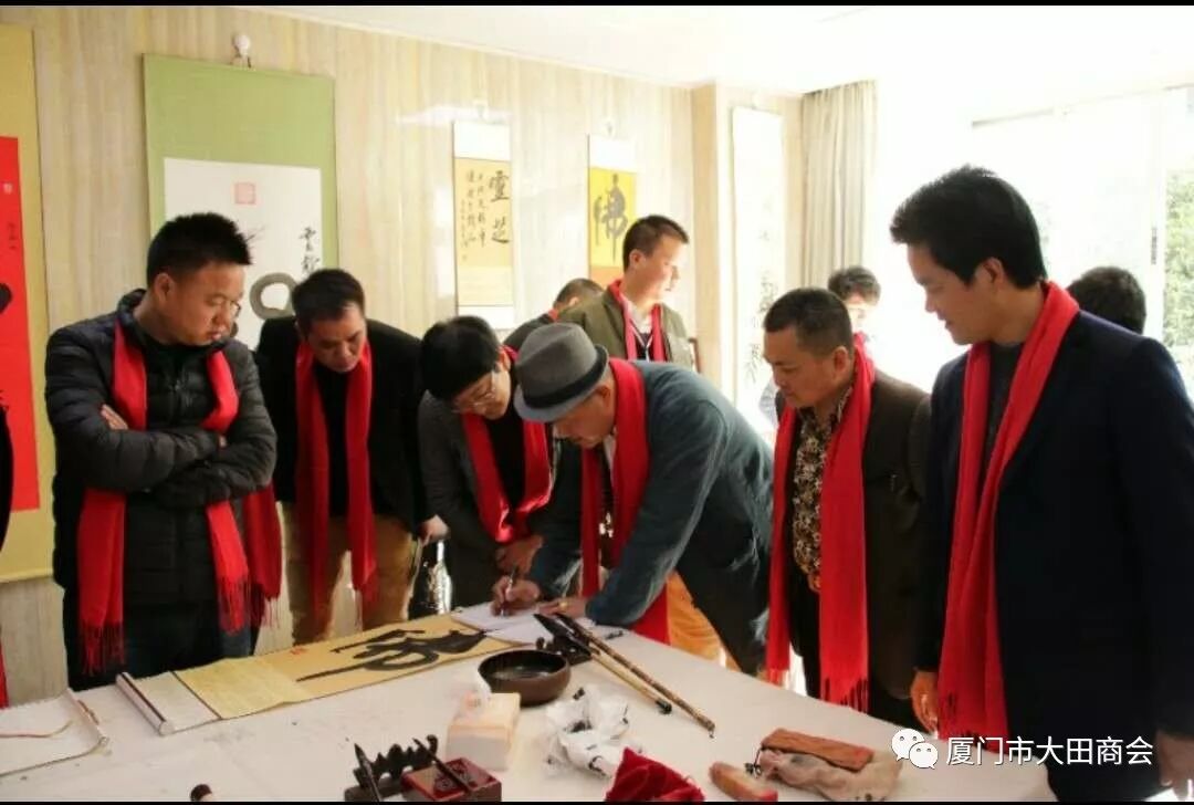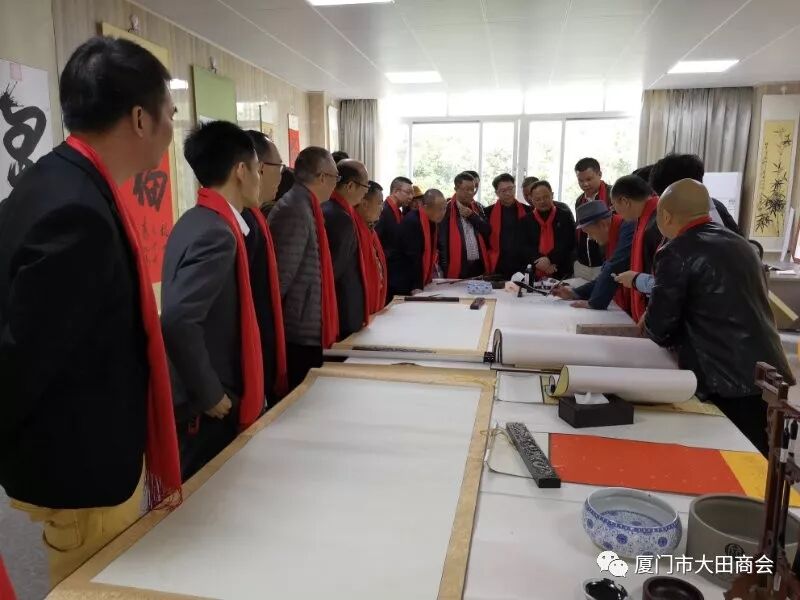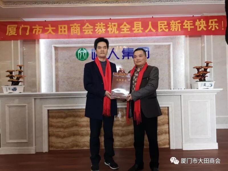 2019年1月27日上午,大田县委书记陈文华、副书记连仁魁、政协副主席兼招商办主任阮芳率领县委办、发改局、工信局、招商办相关部门的领导到厦门市大田商会表示新春慰问,并给商会送上了“金猪”吉祥物和《大田县志》,表达了大田县委、县政府对厦门市大田商会的关心和祝福,并预祝大家春节快乐,祝愿商会和在座的企业家在新的一年里事业兴旺,取得更大的成绩。 陈书记一行接见了在厦工作的大田籍企业人士,并以座谈会形式介绍大田的变化和发展,认真听取了在厦企业家们的创业心声。 会长陈武连代表厦门市大田商会向县委、县政府对商会工作的关心和支持表示感谢。接着,简要汇报了商会2018年度工作的完成情况及2019年工作计划,并决心把厦门市大田商会的工作跨上一个新台阶,更好地为厦门、大田两地经济服务,为商会会员企业服务。 陈文华书记对厦门市大田商会的各项工作给予充分肯定,对商会党支部的成立表示热烈祝贺,对商会慈善公益事业表示赞赏和感谢。希望商会继续利用平台优势,整合资源,发挥桥梁纽带作用,进一步加强大田与厦门两地经济文化交流与联系,期待在厦大田籍企业家回乡投资兴业,积极参与大田经济建设,助推大田经济发展。 陈书记表示,县委、县政府将认真听取企业家们的意见和建议,积极探索,提供优惠政策,加强协调,做好服务,为大田在厦企业家回乡投资兴业创造更有利条件。 随后,陈书记一行还参观了陈武连会长公司--屹人集团旗下世界最大灵芝博物馆、了解企业生产的系列产品,参观文化传媒公司达人秀的现场书法作品表演等。 参观完后,陈书记首先对屹人集团的发展理念给予充分肯定。陈书记说:文化,是知识的智慧之光,是一个企业和个体安身立命之必须,也是前进路上探索未知领域的源源动力,成功树立自己的品牌,需要与文化相结合,创造品牌比制造产品更加艰巨复杂,更需要耐心和毅力。将企业品牌塑造与企业产品相结合、与文化相结合,更能彰显一个企业的活力。屹人集团一定要把握好大健康产业发展的黄金机遇,抓好质量,做好品牌,努力塑造成为世界养生保健业的标杆。