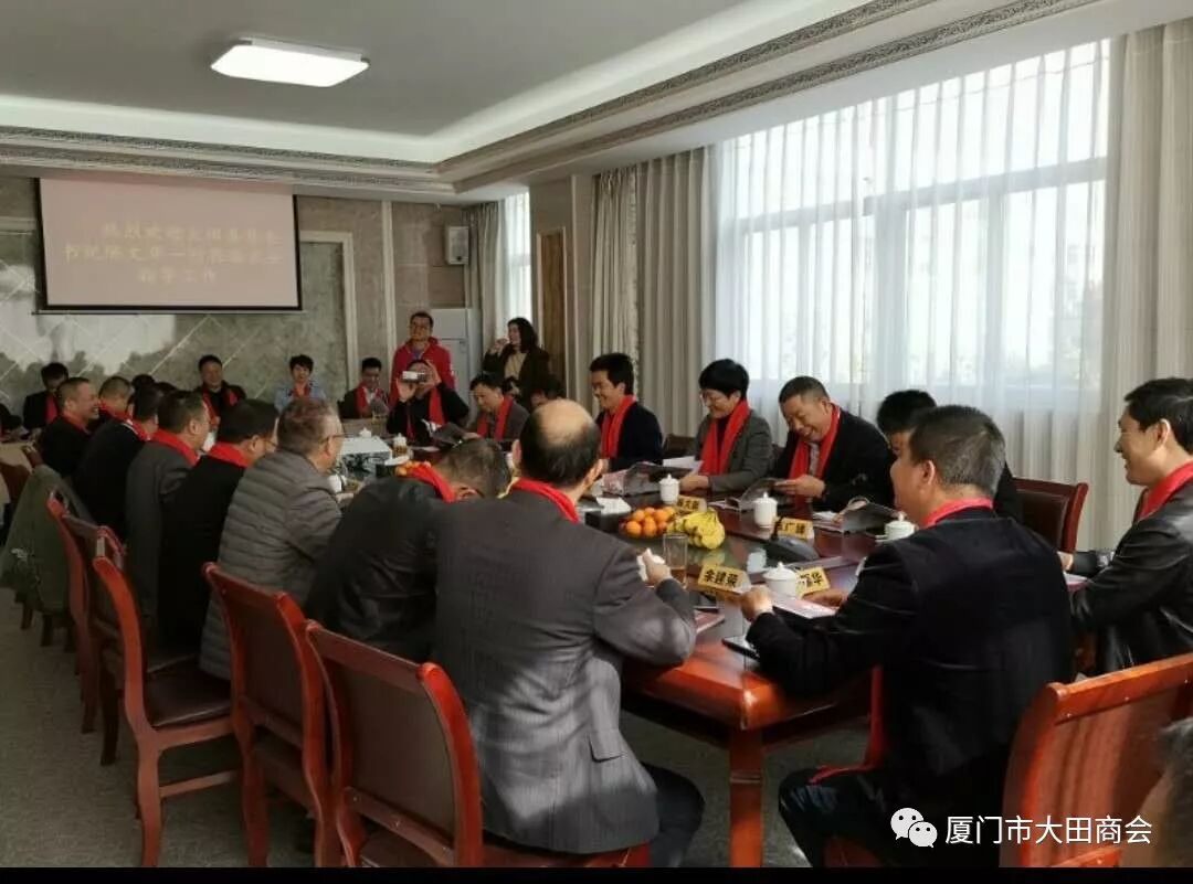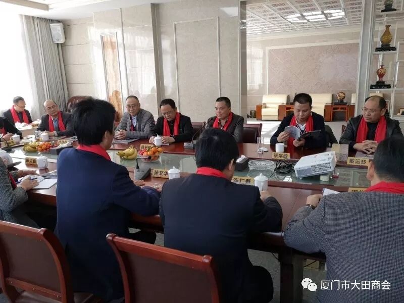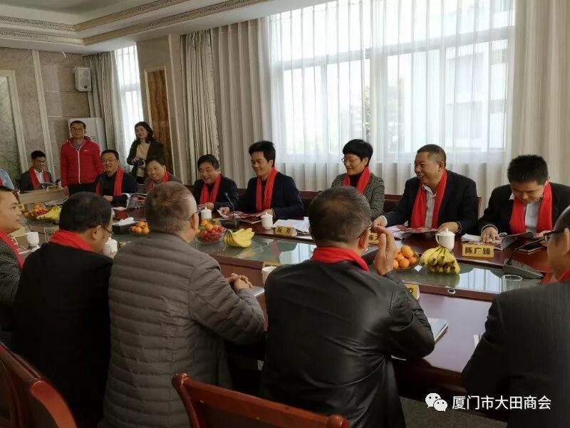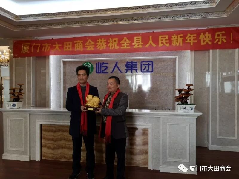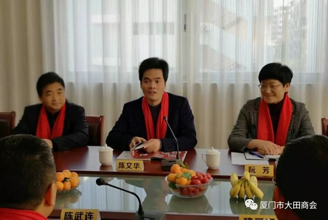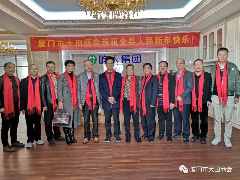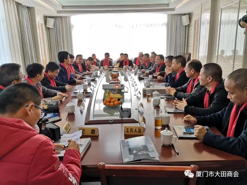 2019年1月27日上午,大田县委书记陈文华、副书记连仁魁、政协副主席兼招商办主任阮芳率领县委办、发改局、工信局、招商办相关部门的领导到厦门市大田商会表示新春慰问,并给商会送上了“金猪”吉祥物和《大田县志》,表达了大田县委、县政府对厦门市大田商会的关心和祝福,并预祝大家春节快乐,祝愿商会和在座的企业家在新的一年里事业兴旺,取得更大的成绩。